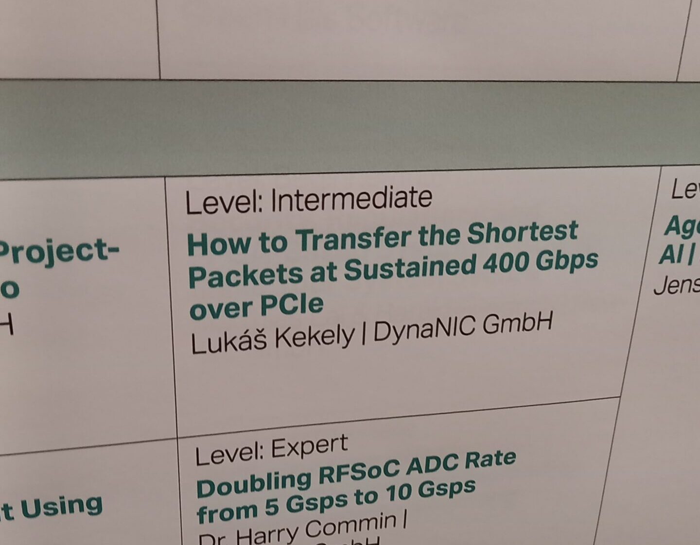 While last year’s presentation focused on what happens inside the 400G-ready FPGA pipeline, this time the topic shifted to a critical and often overlooked part of the data path: transferring high-throughput traffic from the FPGA to the host system over PCIe and DMA.